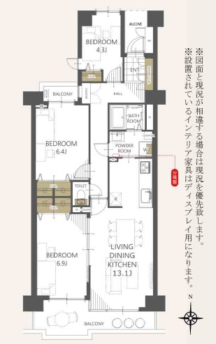 洋6.9畳 / 洋6.4畳 / 洋4.3畳 / LDK13.1畳 |